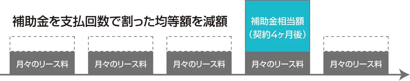 受給された補助金は使わず保管いただき、支払い4回目に相当額をリース引き落とし口座から一括引き落し